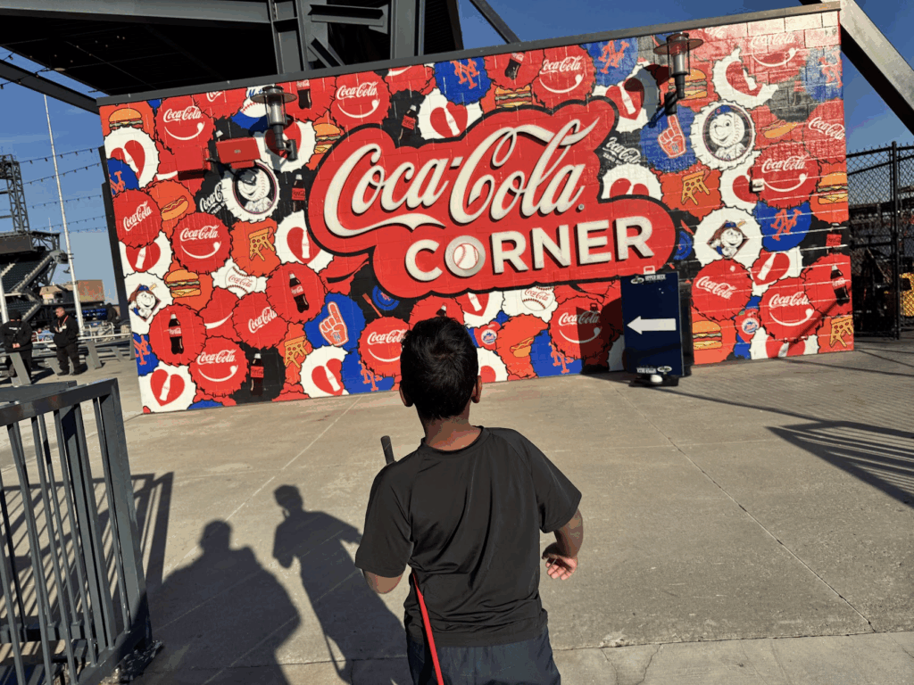 The Coca Cola Corner station was our favorite spot. That iconic red wall with all the Mets branding made for great photos, and my son had fun posing with his club in front of it.