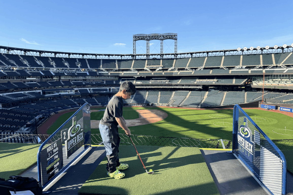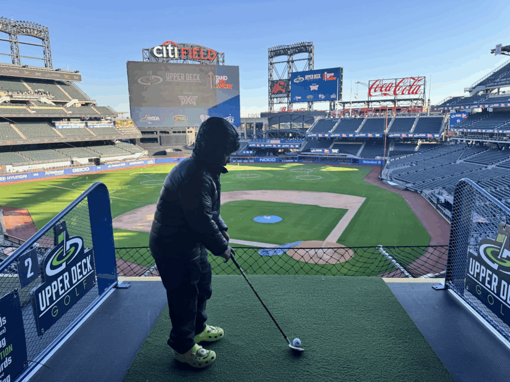 When I heard Upper Deck Golf was coming to Citi Field, I knew my son and I had to check it out. For those unfamiliar, Upper Deck Golf is a touring event that transforms iconic stadiums into temporary golf courses – you hit shots from the upper deck down to custom greens installed on the field below. We booked an 8 AM tee time for what turned out to be a really fun morning.